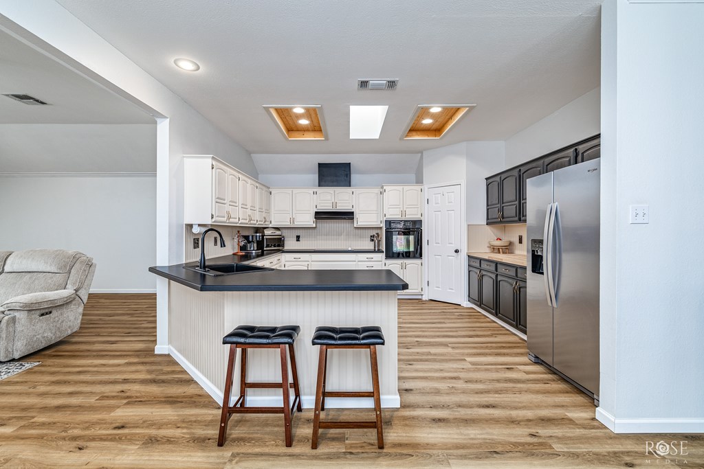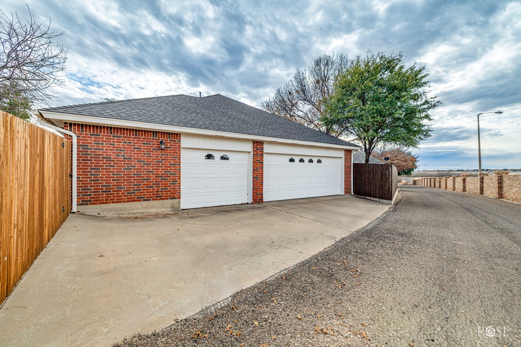 This charming open-concept home features a new roof, skylights, HVAC system and fencing! Nestled in the brick walled Southridge subdivision near Lake Nasworthy, this patio home is minutes from shopping, dining and entertainment. This spacious 3 bedroom/ 2 bath home boasts a sprawling living area. The family room features a vaulted ceiling and brick fireplace framed by 2 built ins for storage/media. Large patio doors and skylights bathe this home in natural light. The kitchen has tons of cabinet/counter space for storage, cooking and hosting. The primary bedroom features a walk-in-closet and bathroom with a vanity and large shower. One additional bedroom has garage access via a charming, sunny mudroom with skylights while another sits at the front of the home and has lots of natural light. The yard is partitioned by an iron fence to separate the lawn from the shaded patio spaces. All that and a 3 car garage with a workshop space in it! Schedule your showing today.